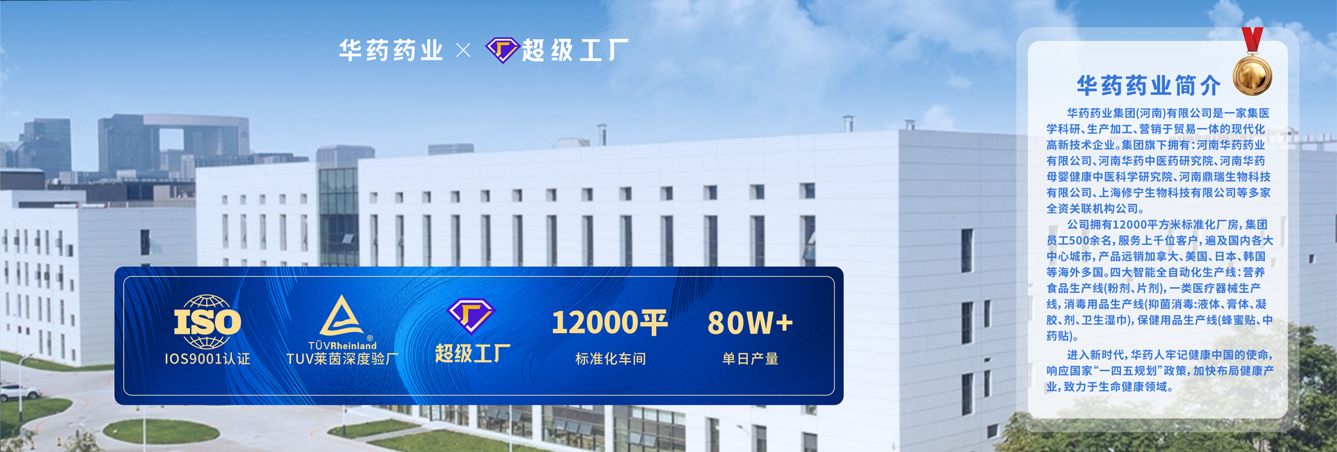 河南華藥集團(tuán)是一家集研發(fā)、生產(chǎn)、加工、銷(xiāo)售于一體的現(xiàn)代化高新技術(shù)企業(yè)。集團(tuán)旗下?lián)碛泻幽先A藥藥業(yè)有限公司、上海修寧生物科技有限公司、河南鼎瑞生物科技有限公司三家全資子公司。華藥集團(tuán)先后創(chuàng)立了“華藥漢本”、“華藥帝龍”、“修寧康”、“仁和泰康”、“信爾康”、“豫醫(yī)古方”、“汐博士”、“HYHB”、“華育慧寶”等多個(gè)知名品牌。生產(chǎn)線涵蓋粉劑、片劑、液體、蜂蜜貼、膏藥貼劑等五大生產(chǎn)線。現(xiàn)有產(chǎn)品100余..···